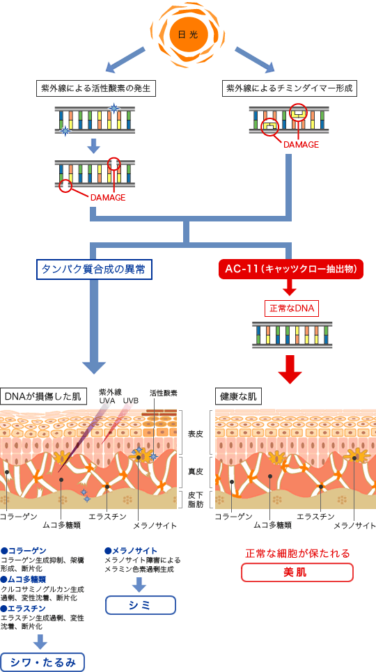 ※1 AC-11 「DNA修復促進物質」として認められた画期的な成分です。紫外線やストレスによるDNAの損傷を修復・保護することで、
